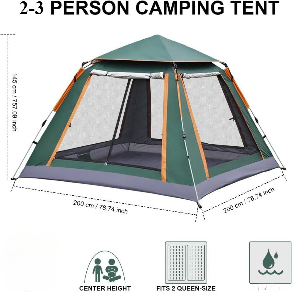 Enough space for 2-3 people:Camping tent is spacious enough to accommodate three adults or four children.