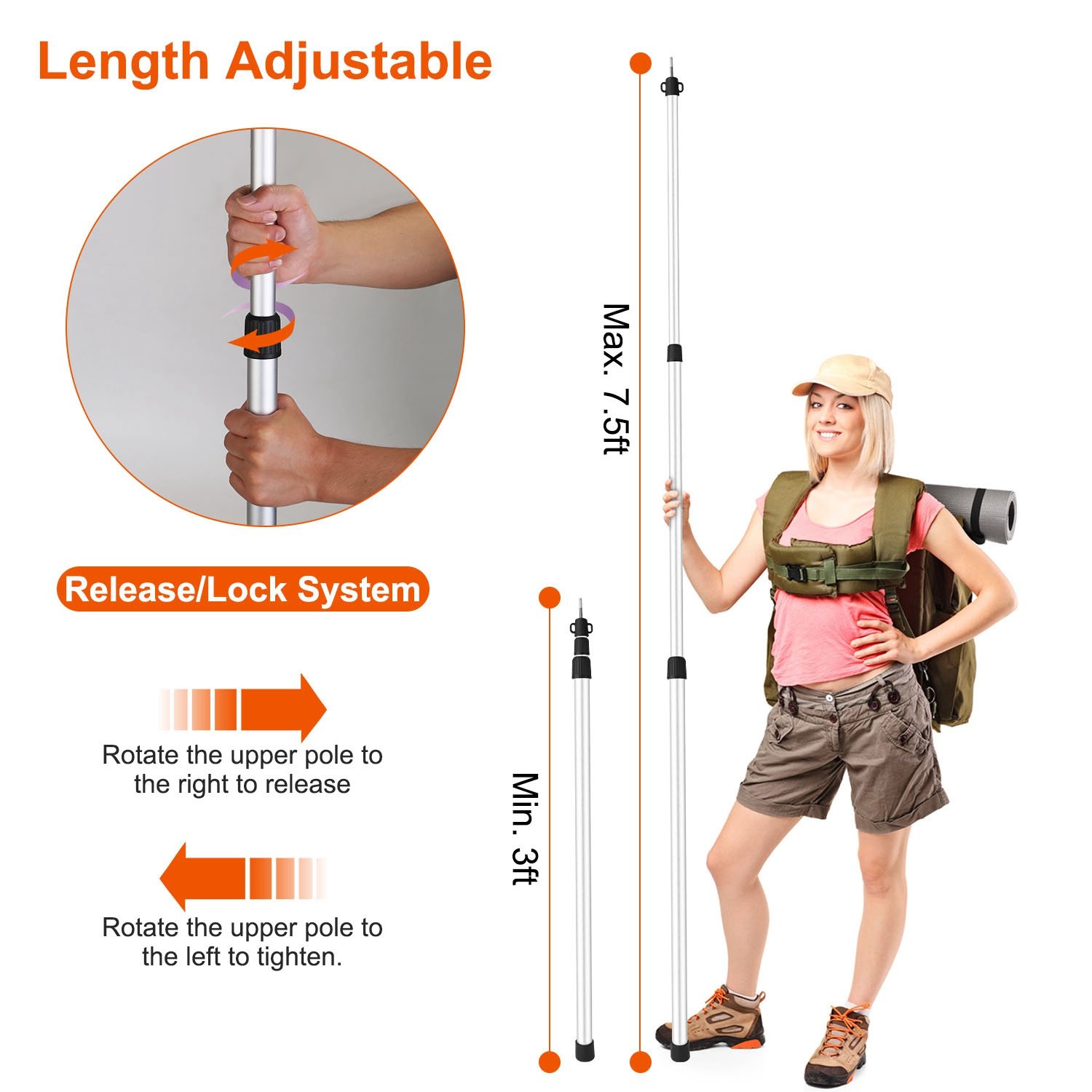 Home > 2Pcs Telescoping Tarp Poles Portable Aluminum Awning Poles 3ft to 7.5ft Adjustable Telescopic Tarp Tent Rods