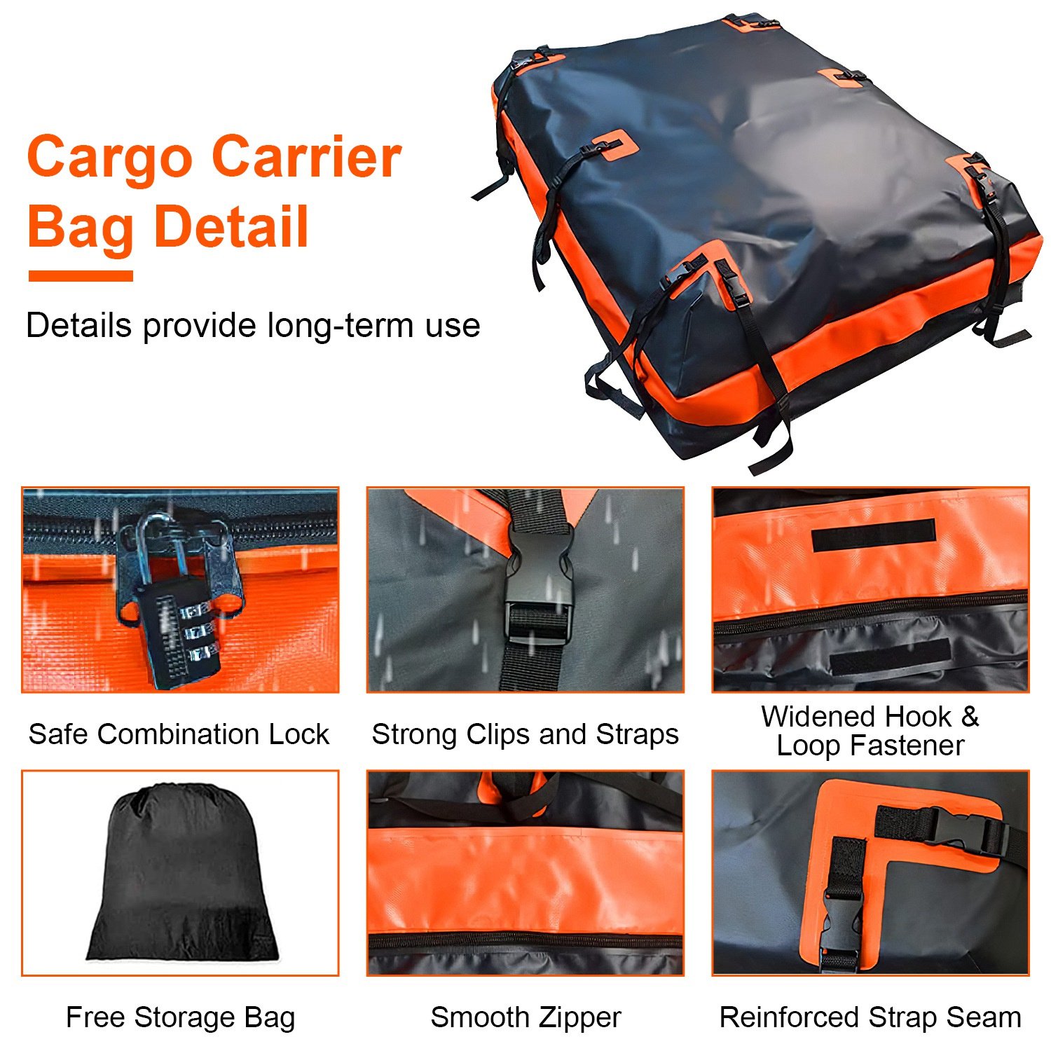 *High Compatibility*:Our versatile cargo carrier bag can be used with any sized car,truck or SUV,regardless of whether or not your car has a roof rack. When not in use,this bag can be folded into the storage bag we provided to save space.