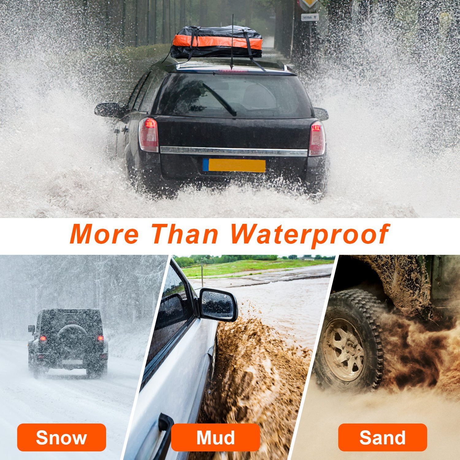 *More Than Waterproof*:Made of smooth zipper,8 hook & loop fasteners and 500D PVC tarp,this car roof bag is not only waterproof,but also can be freely used in extreme weather,like heavy fog,dust storms,snowstorm. Keep your luggage always dry and clean.