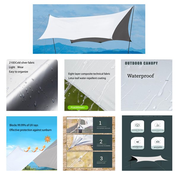 • [Large Size Tent]: 173.23 x 173.23Inch Outdoor Sun Shelter Can Accommodate Up To 10-20 People At A Time, It Is Not Only Suitable For Beaches But Also Suited For Various Outdoor Scenes Such As Fishing, Park Outings, Camping, Etc.