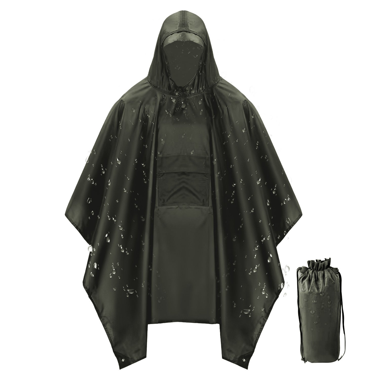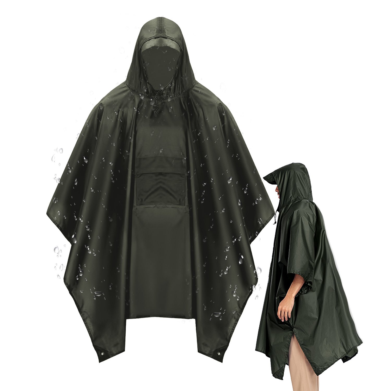 *Considerate Details For Comfortable Wearing*:Our unisex hooded rain poncho has a front pocket for storing small essentials like your keys,phone,or wallet. The spacious hood is designed to protect your head and hair from getting wet while drawstring at the hood ensures that the poncho stays securely in place,preventing it from blowing away in strong winds. The snaps on both sides of the poncho can be used to fix the front and back of the poncho into a sleeve,providing you with the maximum comfort while wearing it.