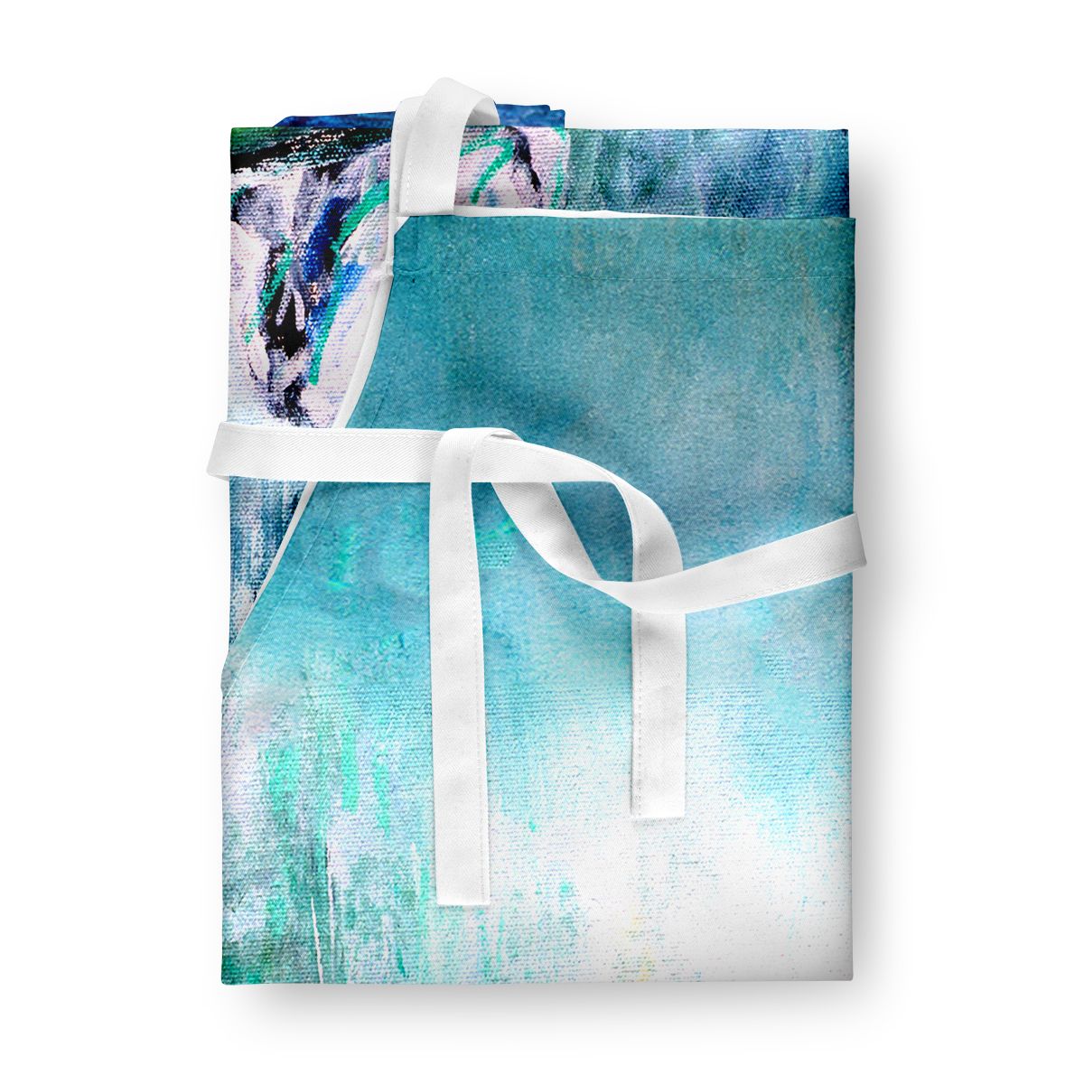 Elevate your cooking, baking, and grilling experiences with our versatile Kitchen or BBQ Apron. This Bib Style apron isn't just limited to culinary activities - it also serves as an excellent baking apron, artist apron, server apron, gardening apron, or even a dog grooming apron. The apron showcases vibrant full-color artwork contributed by one of our talented artists, bringing a dash of style to your daily tasks. With dimensions of approximately 27"W x 30"H, it provides ample coverage to protect your clothing from spills and splashes. Our apron is meticulously crafted from 100% Ultra Spun Polyester, known for its durability and lightweight nature. The apron comes with white tie straps, ensuring a comfortable and adjustable fit for all. It's a perfect choice for kitchen apron enthusiasts, whether you are a woman or a man. Designed for easy maintenance, this apron is fully machine washable. The quick-drying polyester material actively reduces staining, keeping your apron looking fresh and new for longer. Our beautifully designed apron isn't just a functional kitchen accessory - it's a fashion statement in the culinary world!