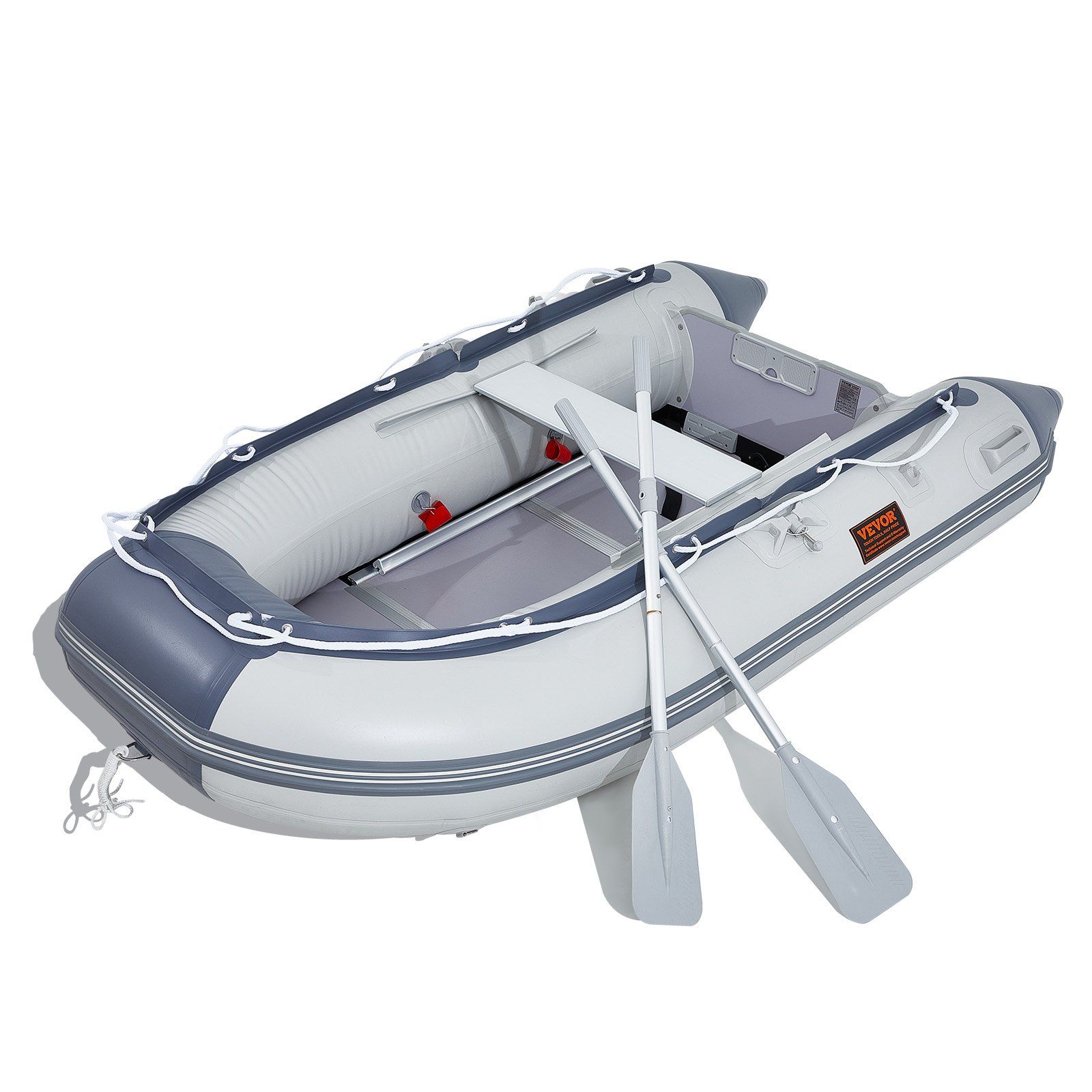 3.High-Speed Performance: Designed for lower resistance and energy-efficient navigation, the inflatable boat features a V-shaped hull and an inflatable keel, allowing for flexible steering and effective wave breaking. It accommodates an engine of up to 15 horsepower or an electric towing motor. The inflatable raft comes with 2 pcs 51.2" aluminum oars, enhancing its speed capabilities.
