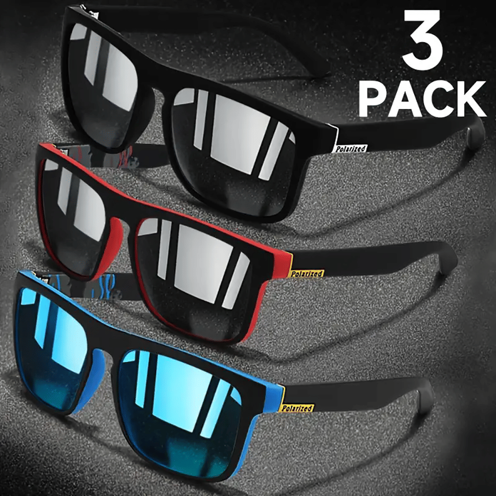 3PCS Square Polarized Sunglasses Anti Glare Sun Shades For Summer Party Vacation Travel Driving Fishing