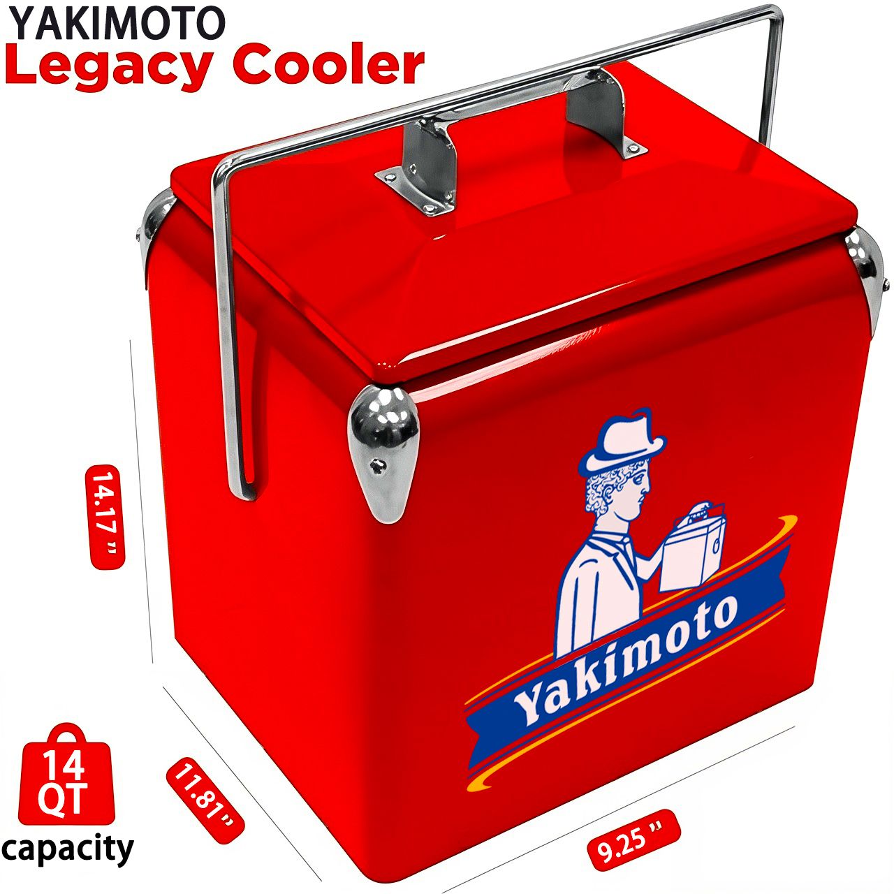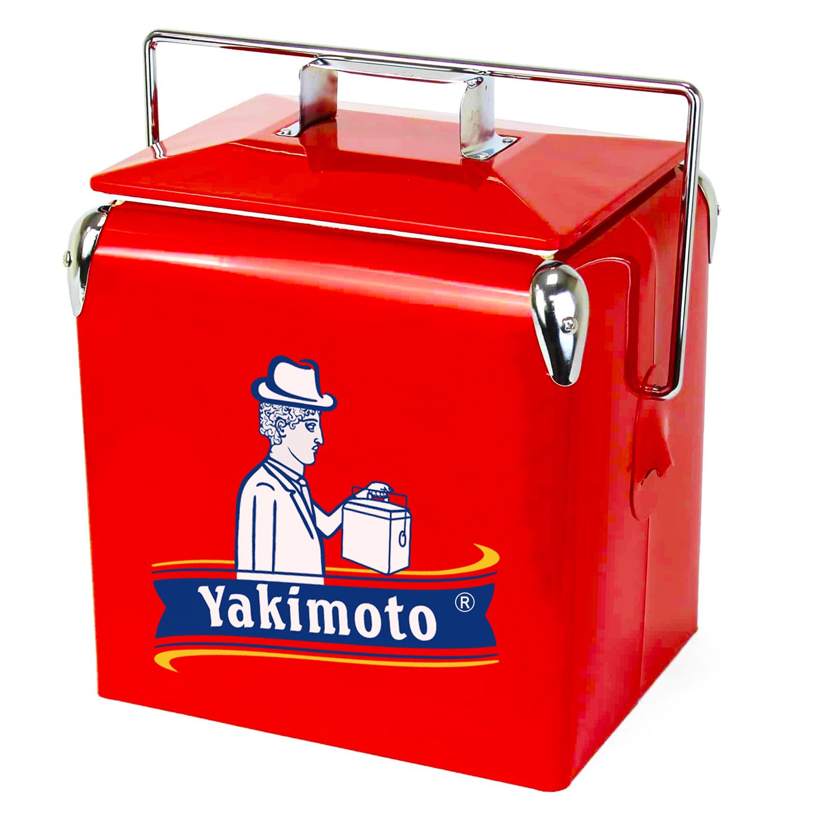 5.Perfect Gift : Unique retro-style cooler with eye-catching red exterior, polished chrome accents, and vintage Yakimoto artwork is the ideal gift for collectors and day-trippers