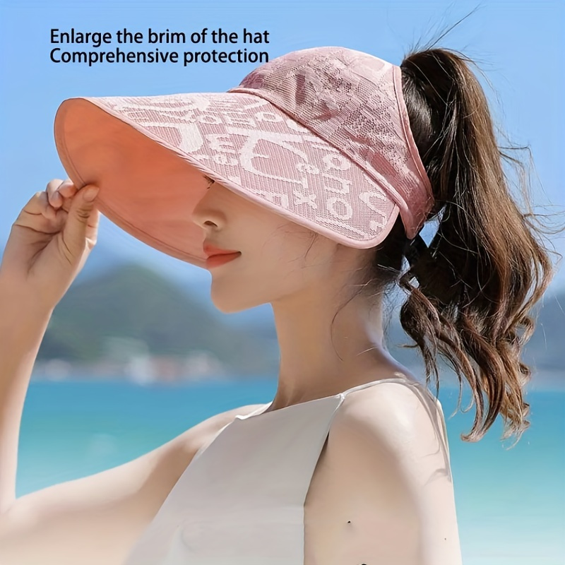 Letter Pattern Sun Hat; Fashion Large Brim Empty Top UV Protection Cycling Fishing Outdoor Casual Ponytail Hat