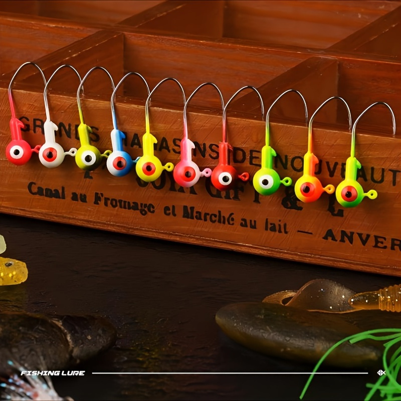 10pcs Round Painted Ball Head Jig Hooks Kit For Soft Baits; Fishing Lures; For Bass Trout Freshwater Saltwater