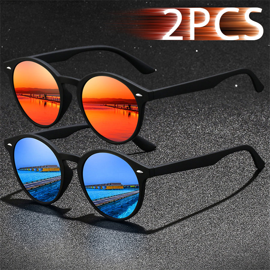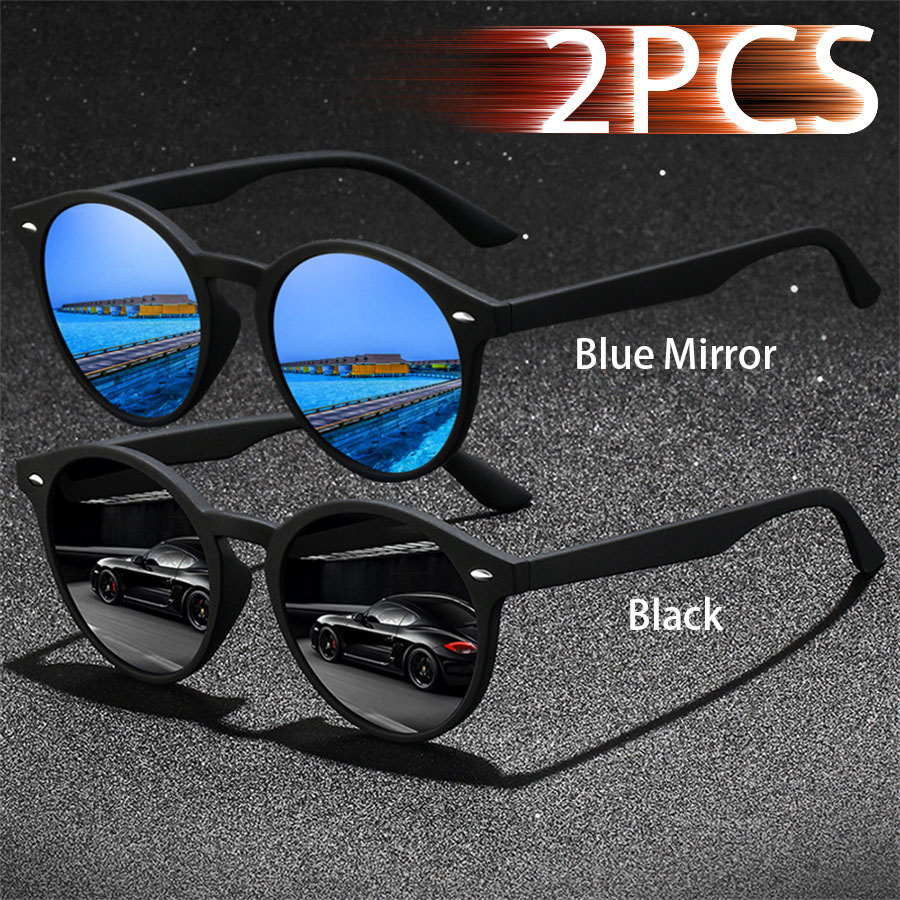2 Pieces Fashion Vintage oval Sunglasses Men Women Fishing Driving Man Luxury Brand Designer Sun Glasses Anti-Glare Retro Eyewea